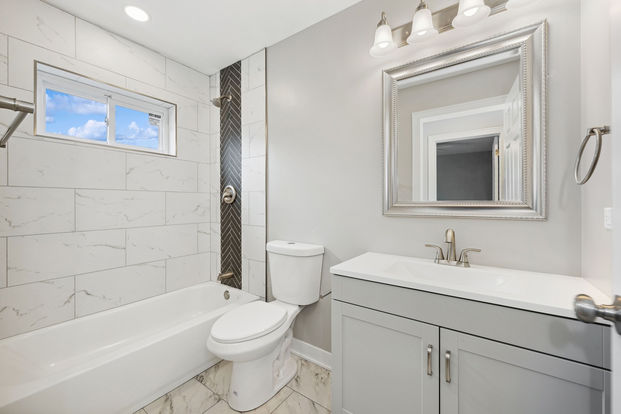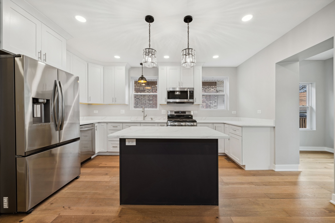 Stunning newly renovated SFH in the best MayFair location! This spacious home features 5 bedrooms, and 4 bathrooms across 3 finished Levels, providing ample space for family & guests. The top floor features a primary suite with tandem-room for either a W-I-C or home office, a second bedroom and bathroom, plus a separate den which has potential for a 6th Bedroom . The laundry room is also on the second level. Gorgeous new kitchen features an island w/quartz countertops & tile backsplash, 42" custom cabinetry, stainless steel appliances, and everyday eat-in dining area. Enjoy your morning coffee or tea in the sunroom off the kitchen. The main level also features an over-sized light-filled living room w/additional space for formal dining room, plus a bedroom and full bath. The finished basement offers a family room, two bedrooms and another full bathroom. Recent upgrades include new roof, new plumbing, new electric, new zoned mechanicals, new windows and a new concrete pad. This property offers accessibility and convenience! Walk to Mayfair Park and minutes to I-94, Montrose-Blue Metra and Mayfair CTA station! Buyers may be eligible for down payment assistance. Welcome Home!!